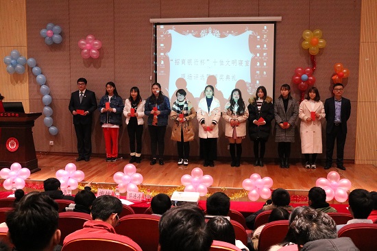 贵大新闻网讯(记者团 蔡佳 实习记者 杨婷婷 杨梅 报道|摄影 黄泳洁)为增进同学们对寝室生活的了解,激发大家共创良好生活环境的热情,营造一个文明、友爱、温馨、整洁的生活氛围,12月18日晚,由共青团贵州大学委员会主办,我校学生会承办的“招商银行杯,贵州大学十佳文明寝室现场评选暨颁奖典礼”在东校区机械工程学院报告厅举行。