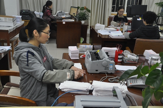“所有来的单子我们都收,收完之后都安排晚上加班做,全处上下满负荷的运转,没有一个闲人。”财务处处长王斌告诉记者,“事实上,师生们的经费报销只是财务处的工作之一,在繁忙之余财务处还负责着学校的税务、国有资产清查、新校区建设工程的筹资与融资工作、个人所得税的申报、学生津贴的发放、督办各个部门专项资金的收回等工作,希望师生能对财务工作多一份理解。”