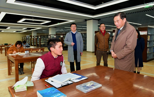 陈坚还走进图书馆,询问同学们图书馆供暖系统启用后的效果,鼓励同学们努力学习、以优异的成绩迎接新一年的到来。