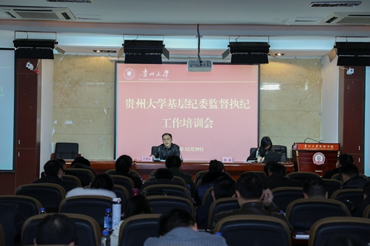 贵大新闻网讯(记者 梁昱坤 摄影 李柏峰 赵龙)12月29日上午,我校在管理学院三楼报告厅召开基层纪委监督执纪工作培训会,校纪委书记汪海波出席会议,校各基层纪委委员、书记,校纪委特聘纪检员以及其他基层党委副书记或负责纪检工作人员参加会议。